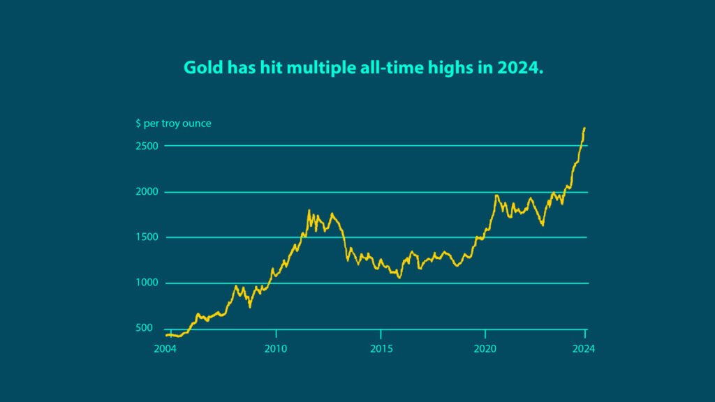 Gold’s rally remains unchecked as prices reach well beyond the $2,700 an ounce mark. This recent jump pushes the precious metal’s yield to more than 33% in 2024 alone. Understanding the backdrop of this surge can help investors better prepare for where gold prices might go in the future.