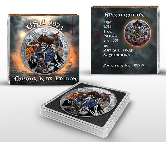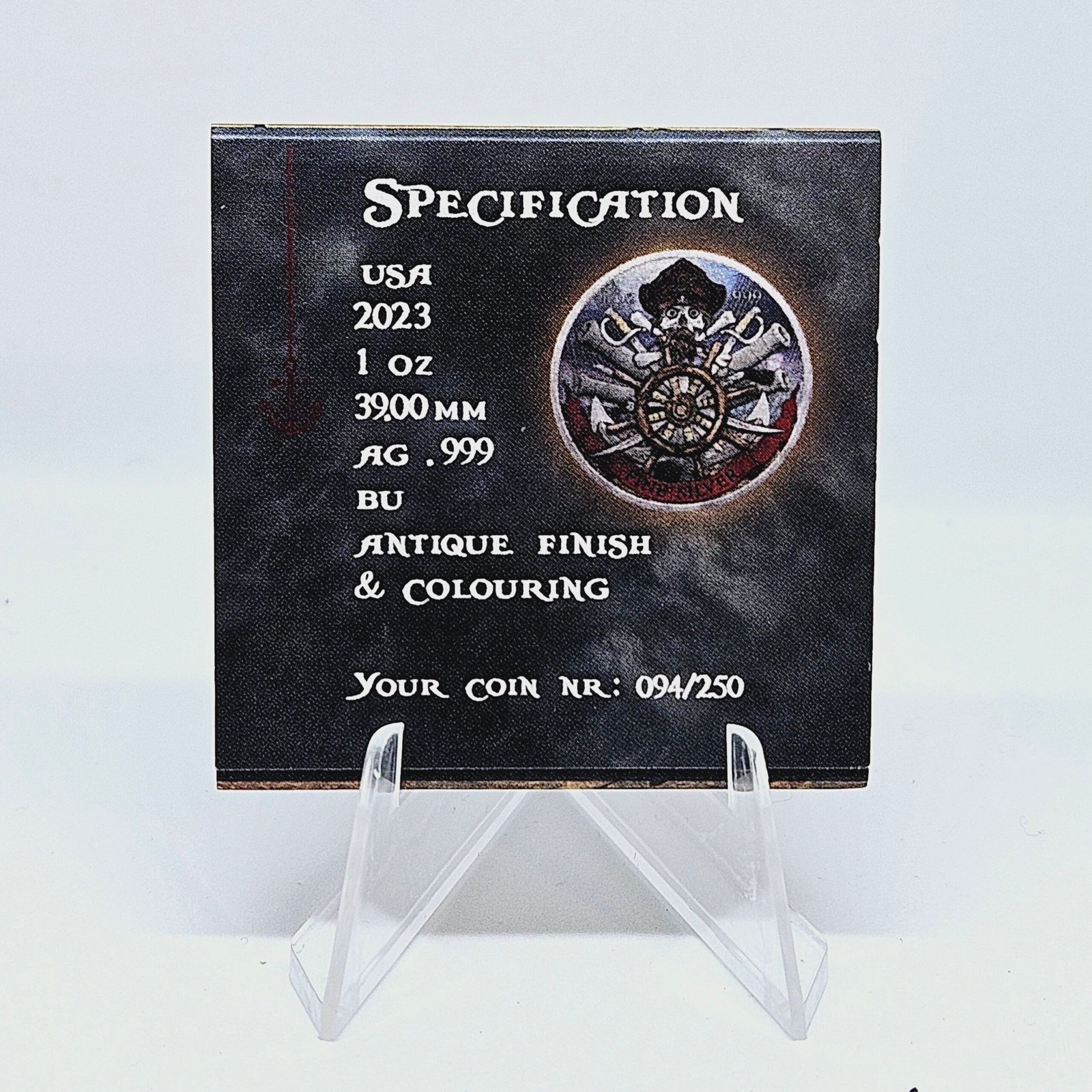 1 oz Silver Round Dead Men Tell No Tales Captain Kidd Edition 2023 Color