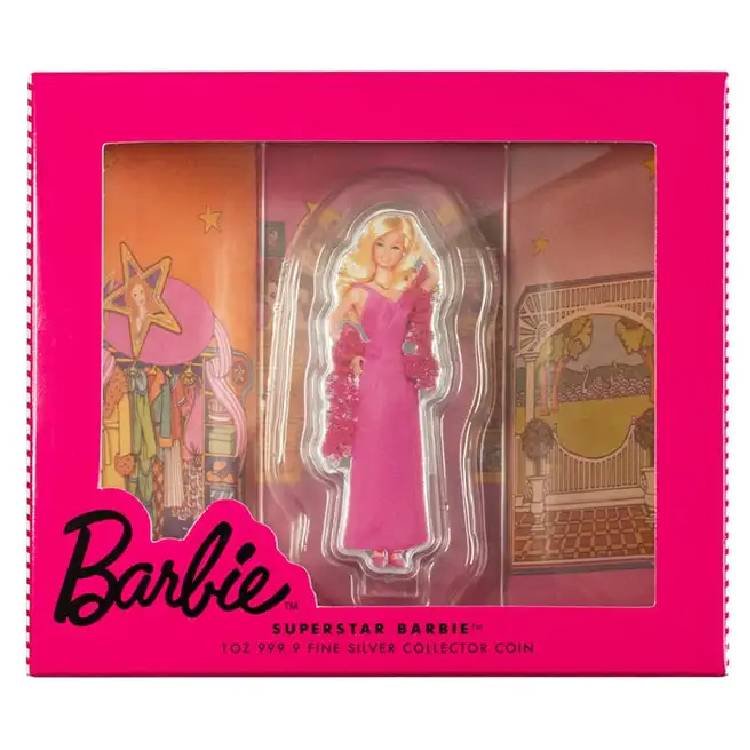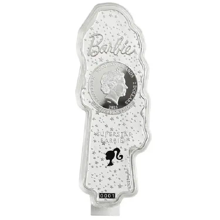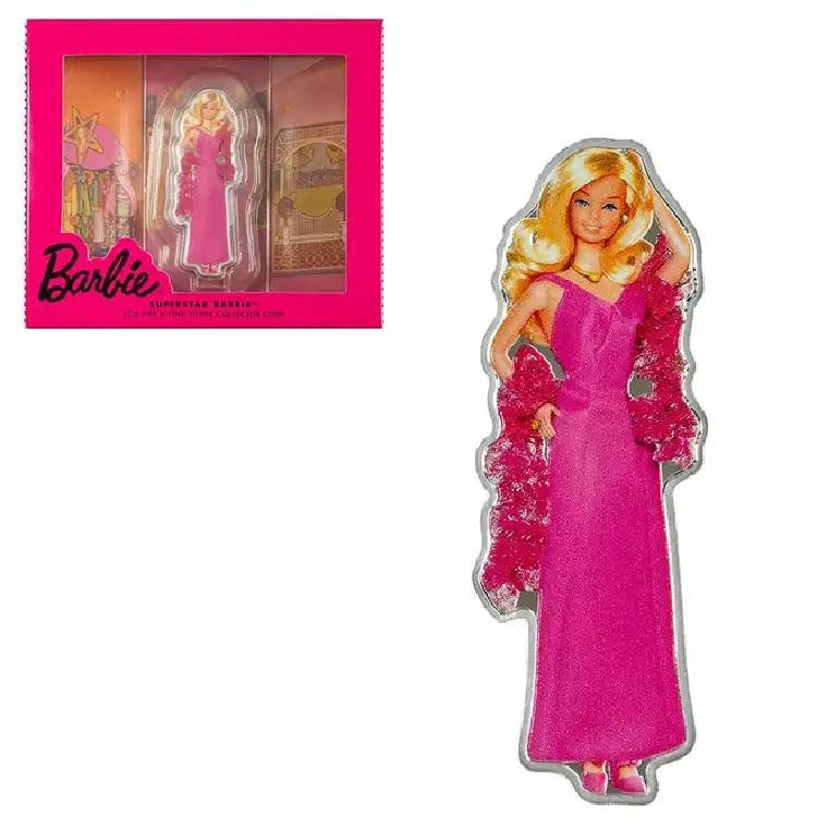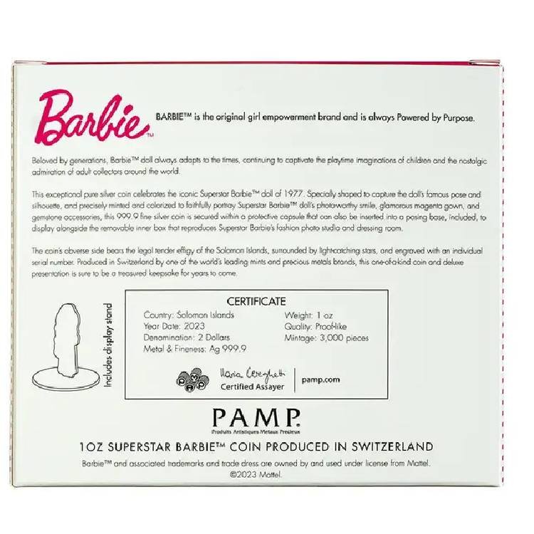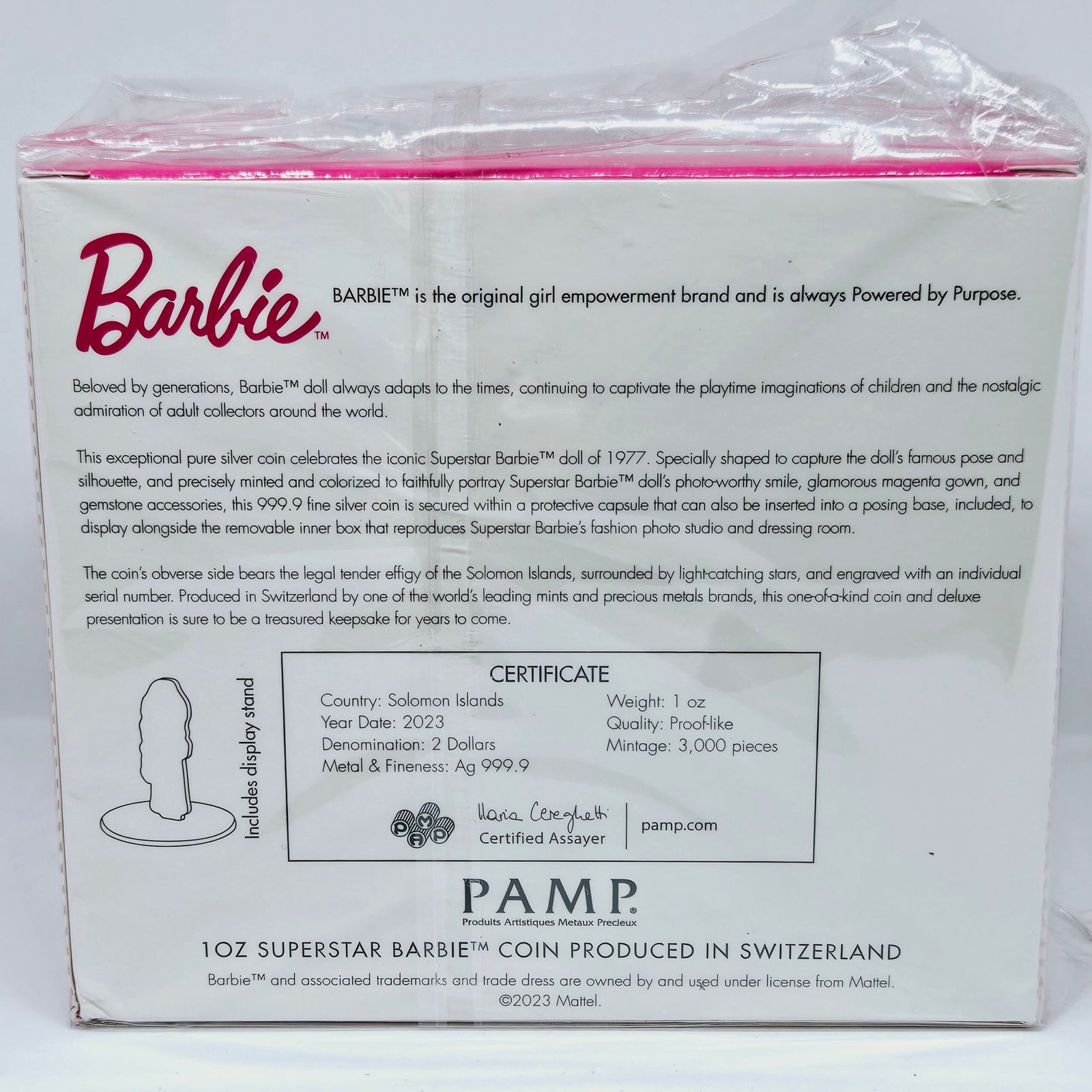 1 oz Silver Superstar Barbie 2023 $2 Special Shape Pure Silver Coin – Solomon Island – Pamp Suisse