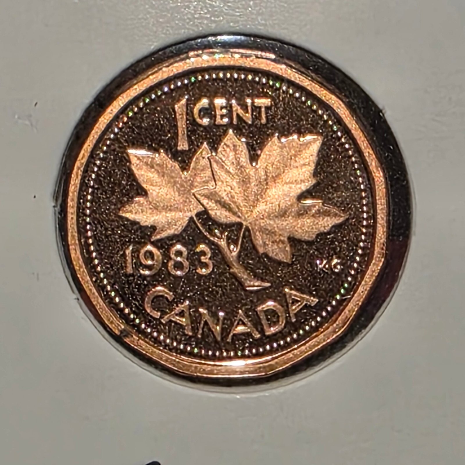 In 1983, the Royal Canadian Mint was in full swing with its new 12-sided design, but not all pennies were created equal. While billions were struck for change, only a fraction were selected for Proof-Like sets. These coins feature a “cameo” effect where the Queen’s portrait and the maple leaves appear to float against a mirror-like background.
