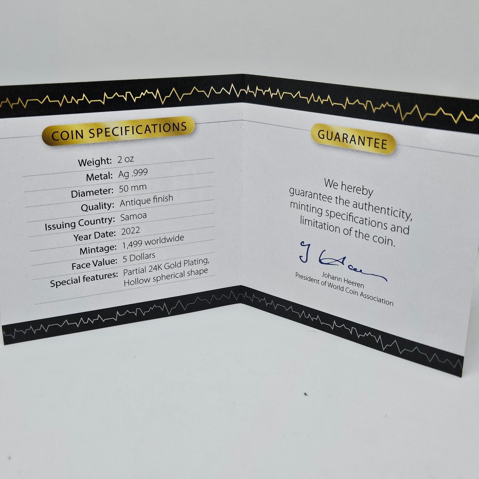 - Successor of our sold out “Heaven & Hell” issue: Two-sided ball-shaped coin with Super Thin Filigree Sphere Technique!