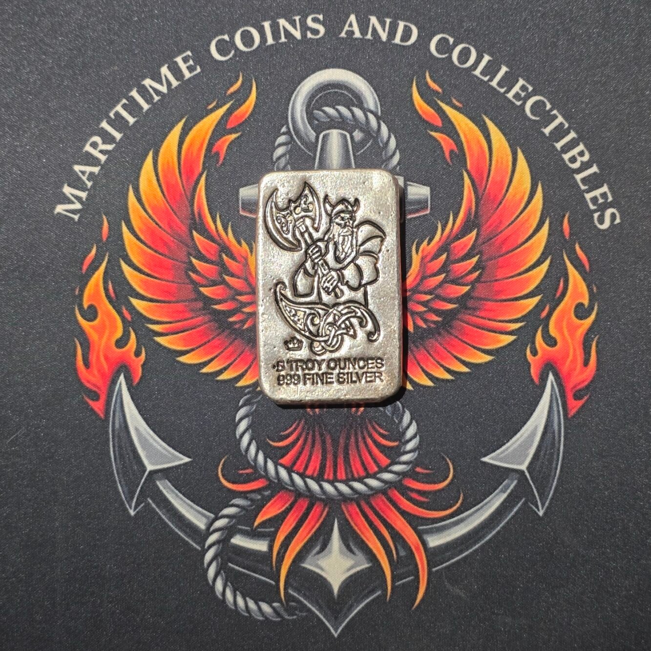 The 5 oz Silver Viking Warrior “Battle Axe” Bar by Monarch Precious Metals is a masterclass in “fantasy bullion.” It’s a rugged, hand-poured piece that feels less like a modern investment and more like a relic unearthed from a Viking hoard. As the first release in Monarch’s acclaimed Viking Series, this bar is highly coveted for its heavy-duty aesthetic and artisanal finish.